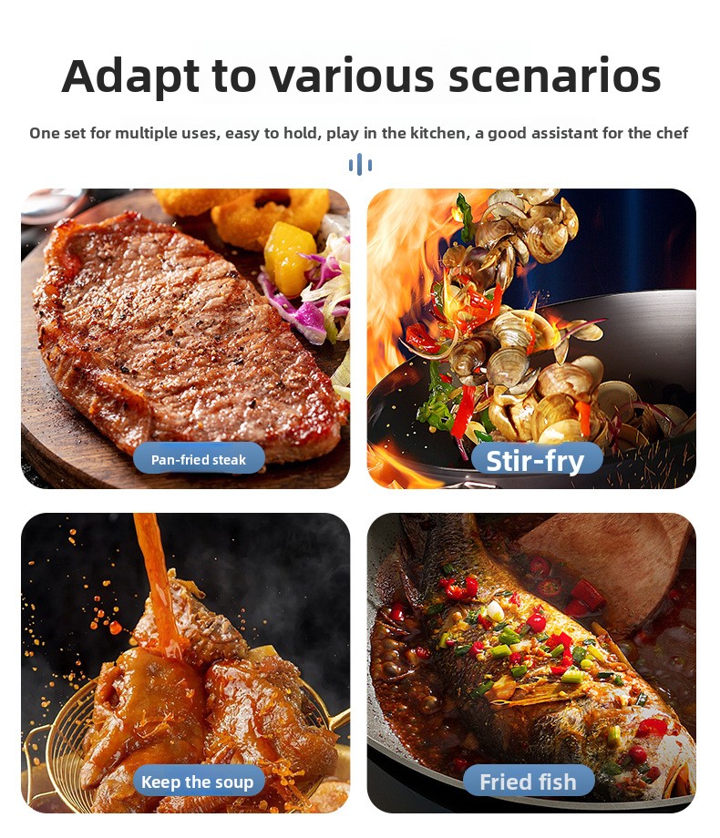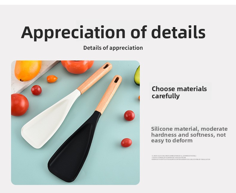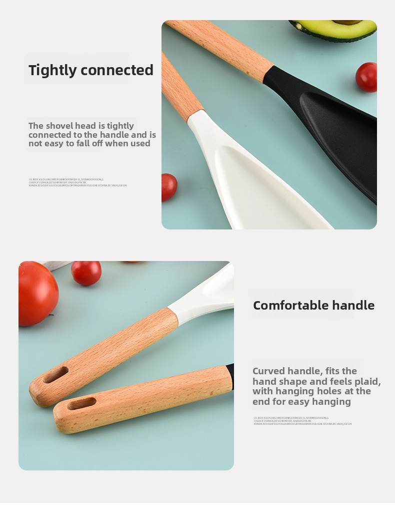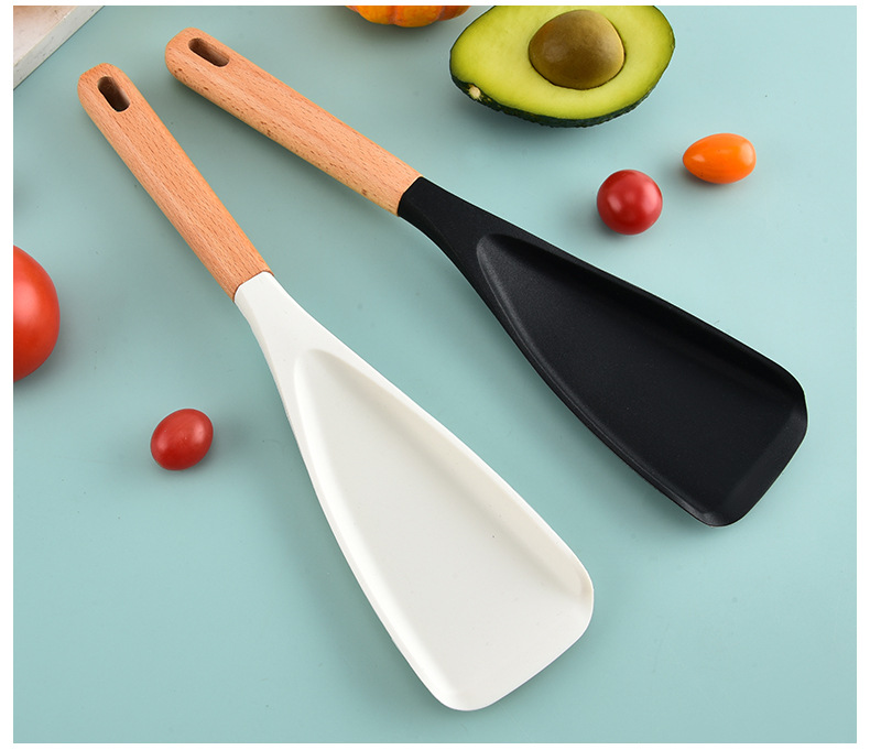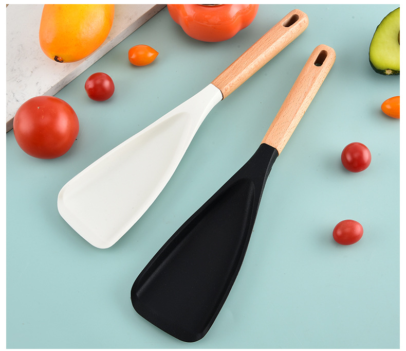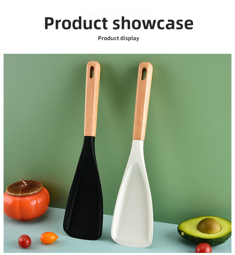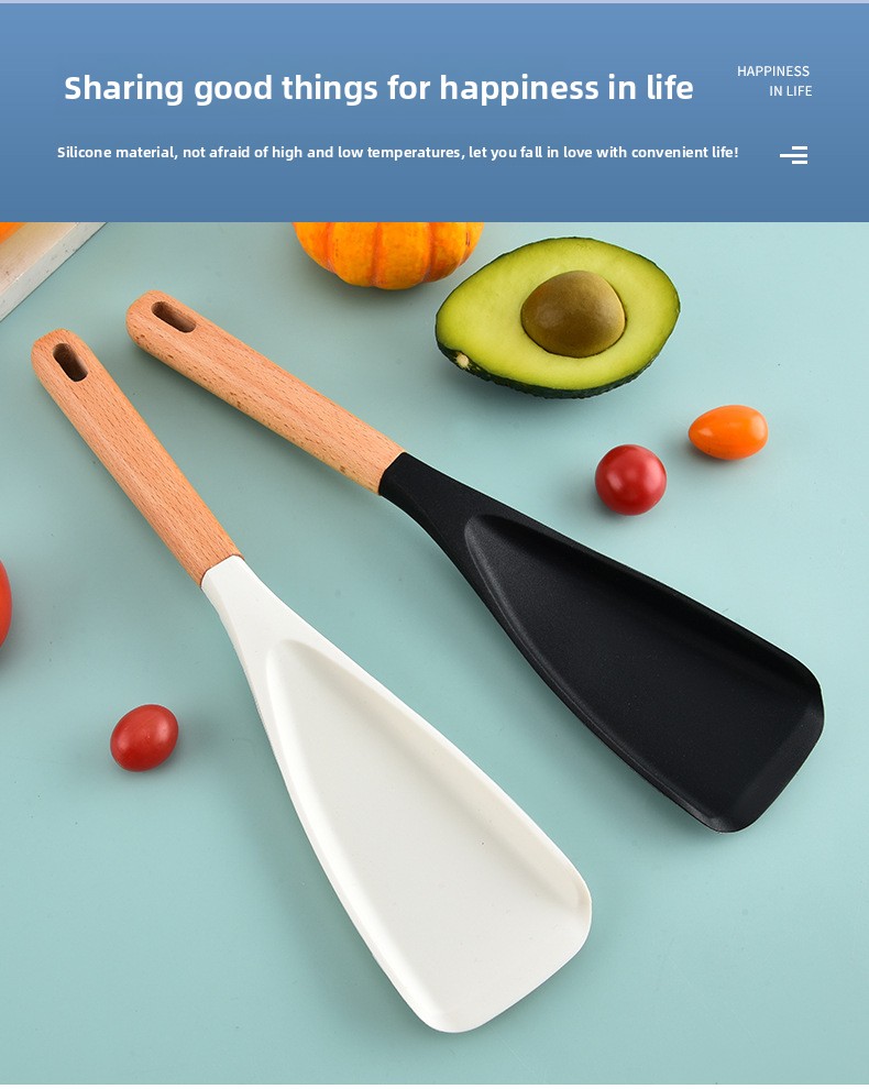 Made from heat-resistant food-grade silicone that withstands high cooking temperatures — ideal for everyday frying, mixing, stirring, and scraping.